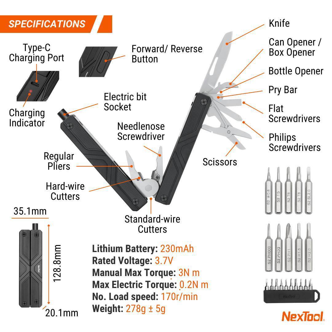 ابزار تعمیرات چندکاره نکستول شیائومی مدل NE20213 | انبردست و پیچگوشتی شارژی 13 کاره